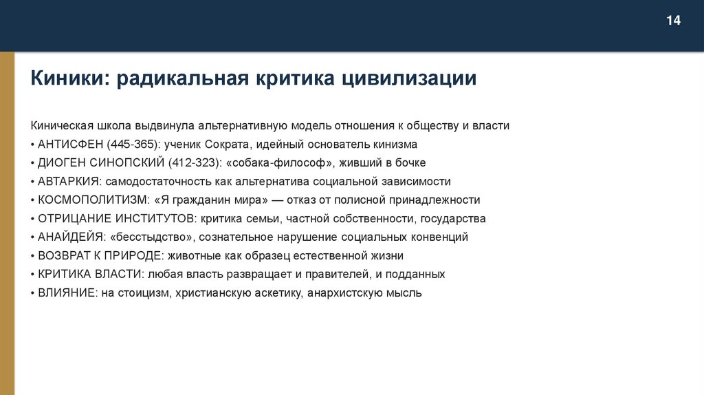 • АНАРХИЗМ: развитие кинических идей критики власти