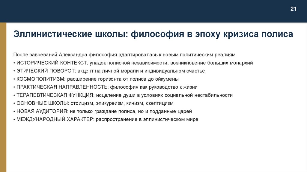 VI век до н.э. - III век н.э. • Полисная система • Философские школы