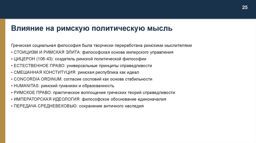 Греческая социальная философия была творчески переработана римскими мыслителями