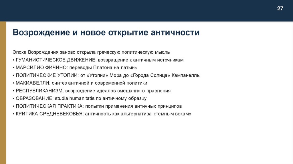 27Возрождение и новое открытие античности