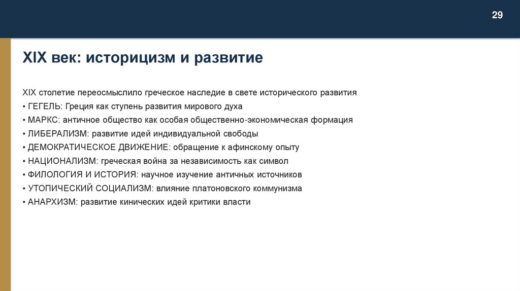 29XIX век: историцизм и развитие
