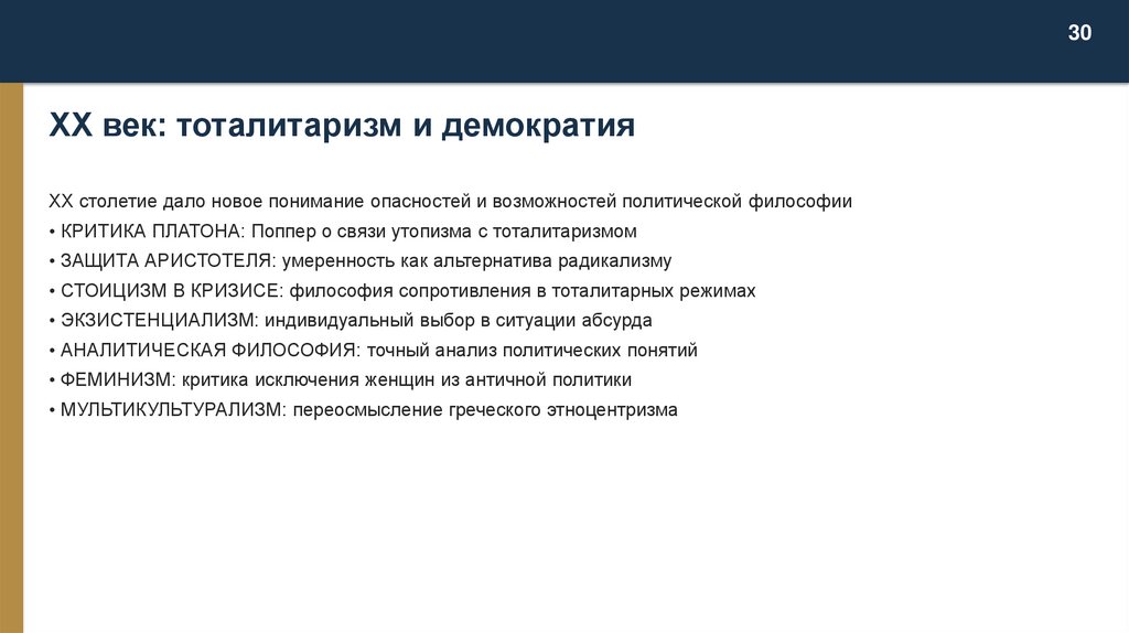 XX столетие дало новое понимание опасностей и возможностей политической философии