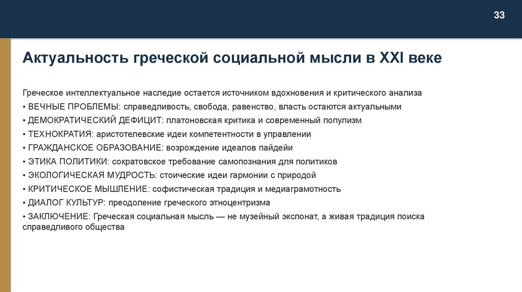 33Актуальность греческой социальной мысли в XXI веке