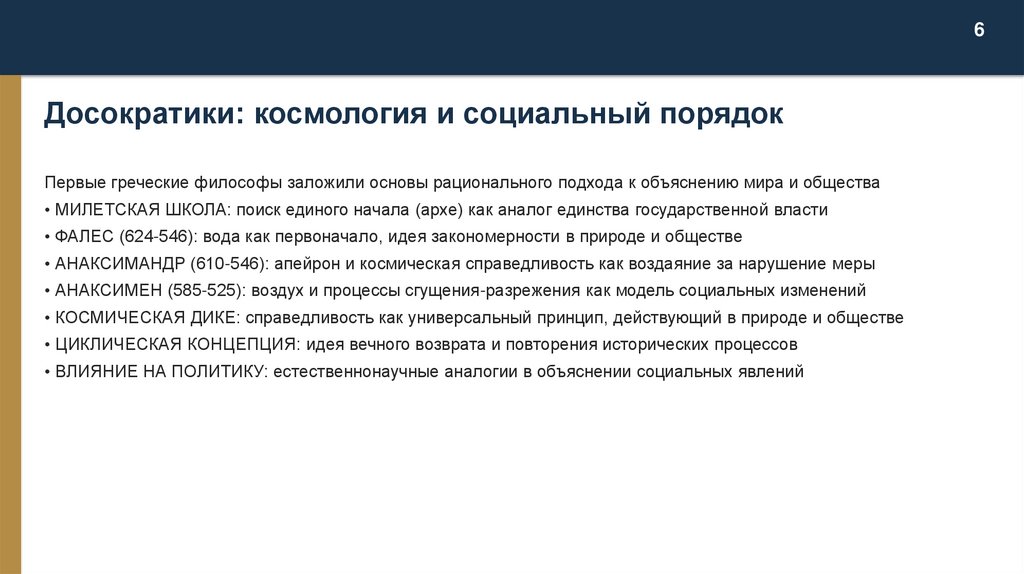 6Досократики: космология и социальный порядок