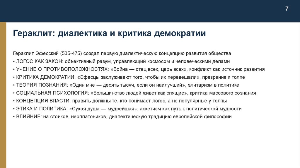 7Гераклит: диалектика и критика демократии