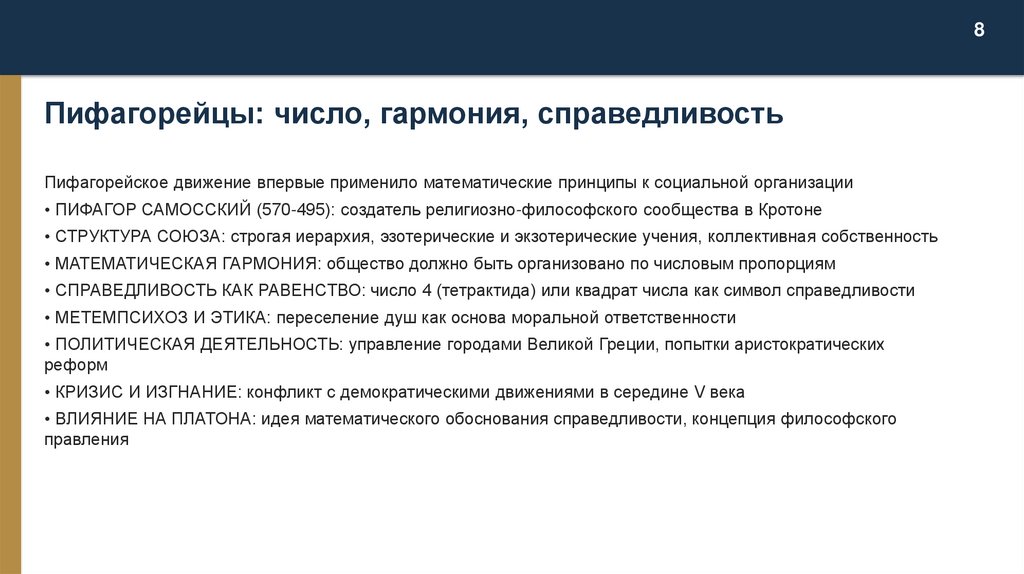 8Пифагорейцы: число, гармония, справедливость