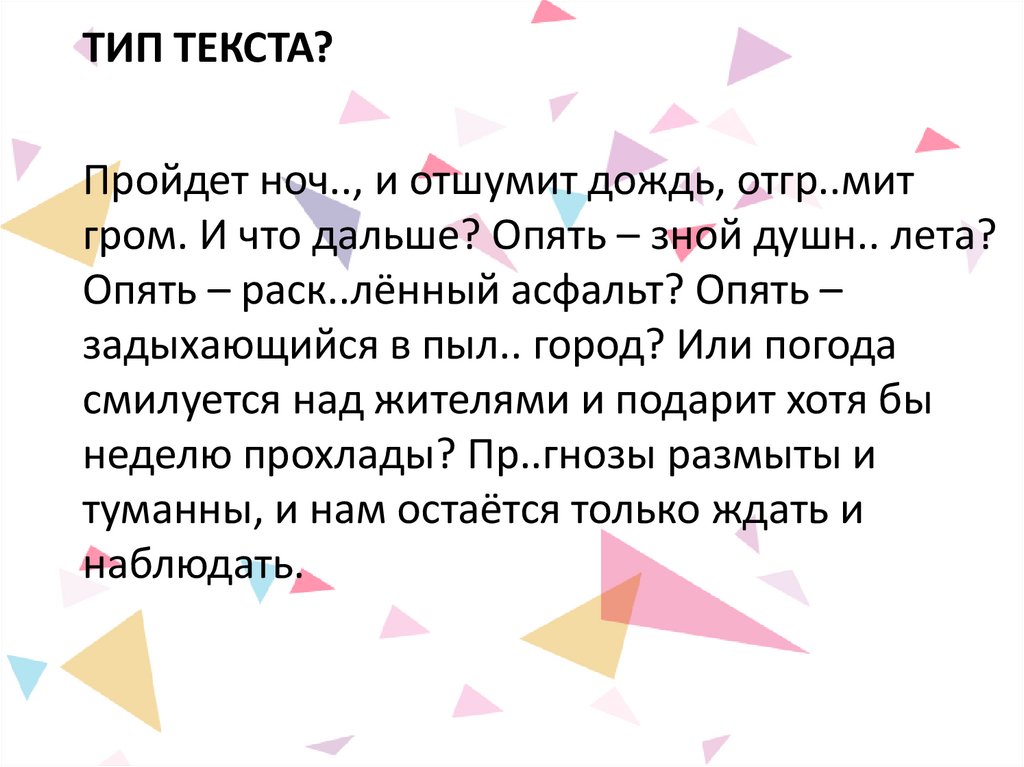 ТИП ТЕКСТА?Пройдет ноч.., и отшумит дождь, отгр..мит