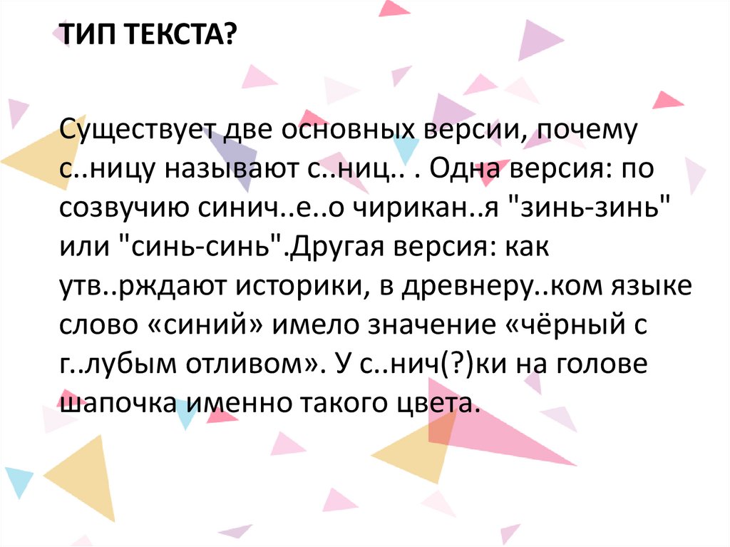 ТИП ТЕКСТА?Существует две основных версии, почему