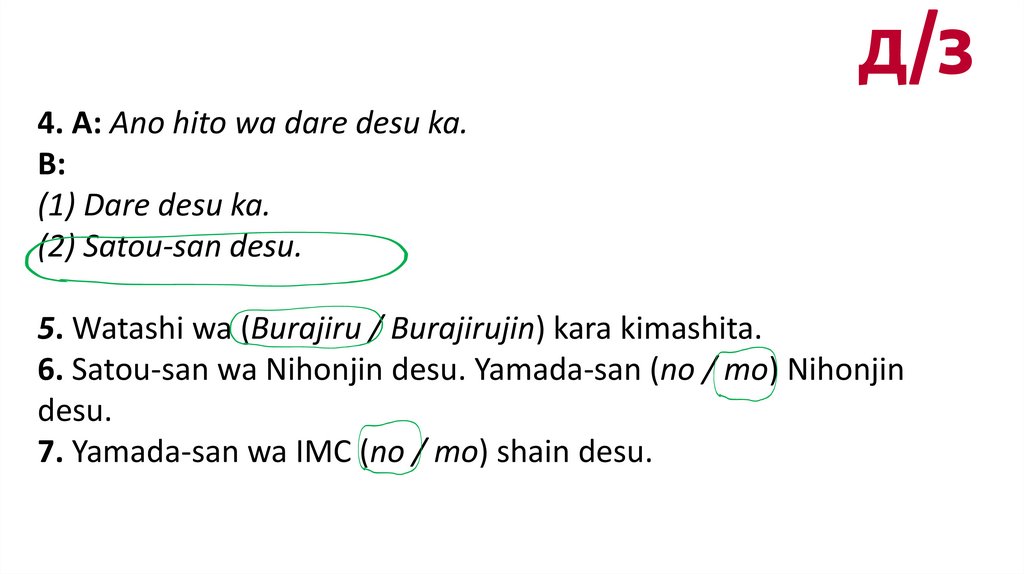 6. Satou-san wa Nihonjin desu. Yamada-san (no / mo) Nihonjin