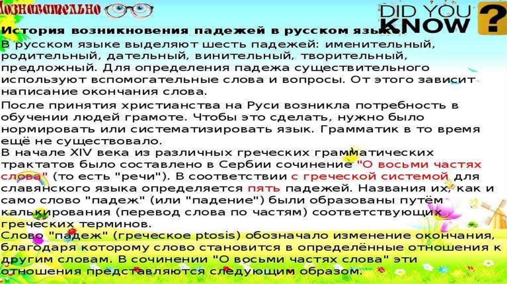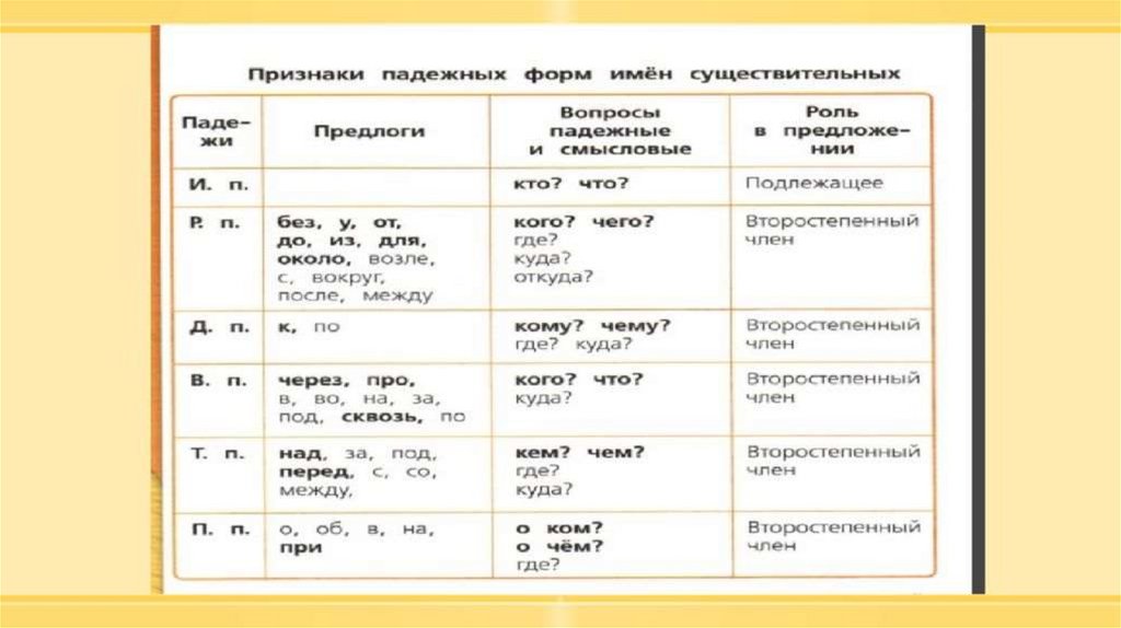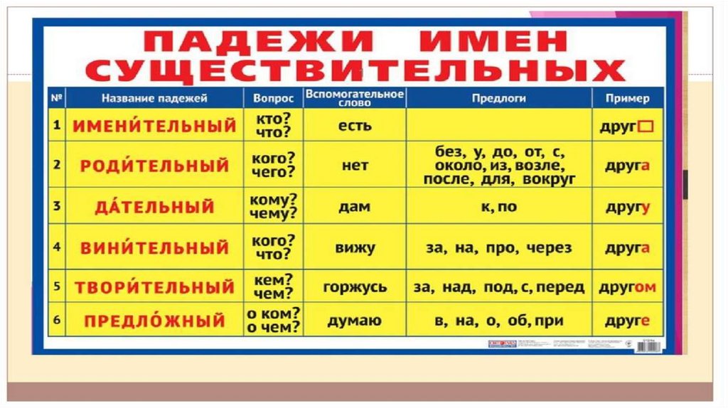 Падежи имён существительных 2 класс