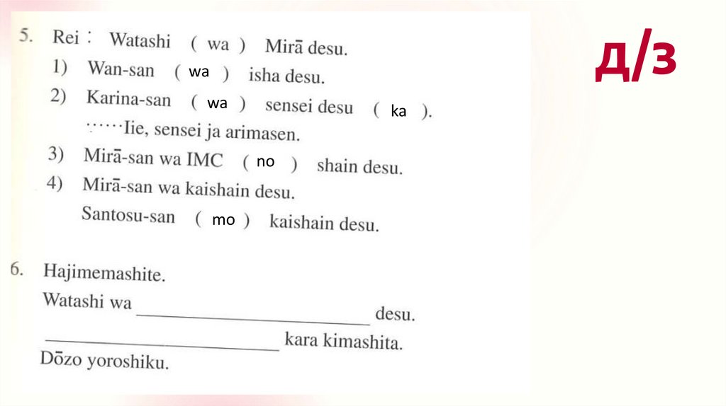 6. Satou-san wa Nihonjin desu. Yamada-san (no / mo) Nihonjin