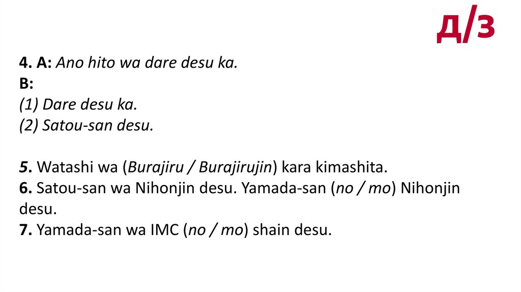 5. Watashi wa (Burajiru / Burajirujin) kara kimashita.