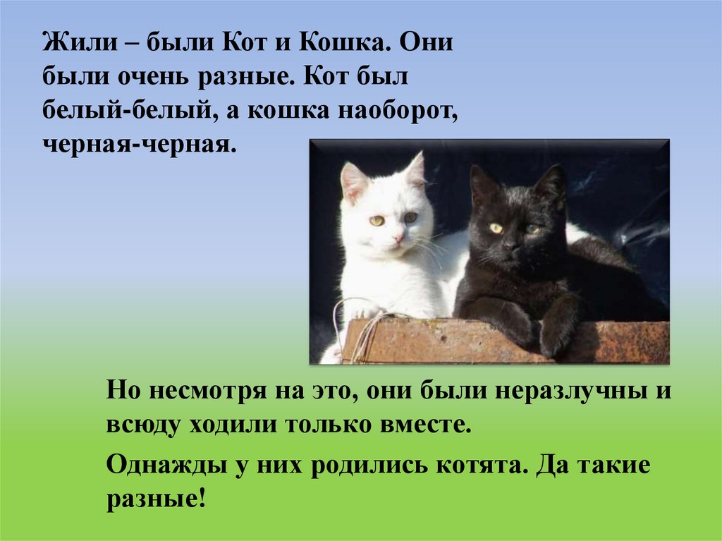 Жили – были Кот и Кошка. Онибыли очень разные. Кот был