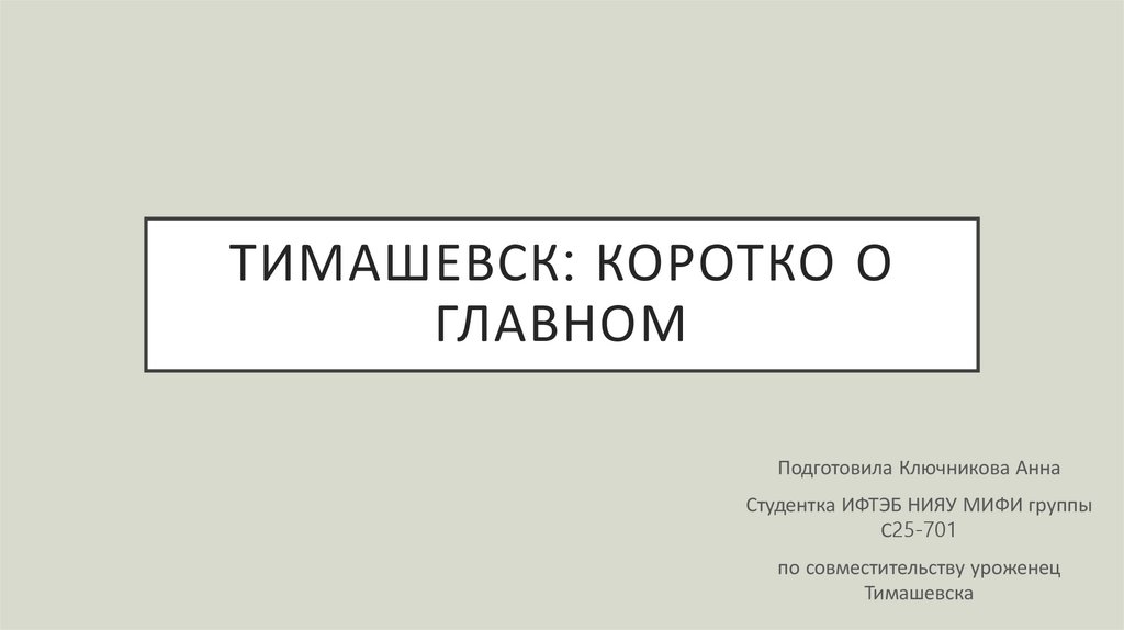 ТИМАШЕВСК: КОРОТКО ОГЛАВНОМ