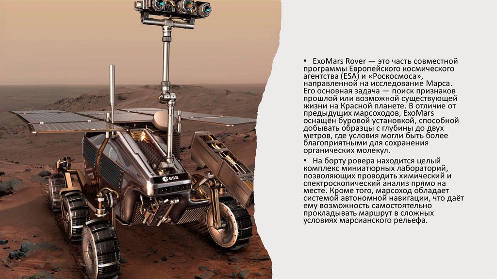 • ExoMars Rover — это часть совместнойпрограммы Европейского космического