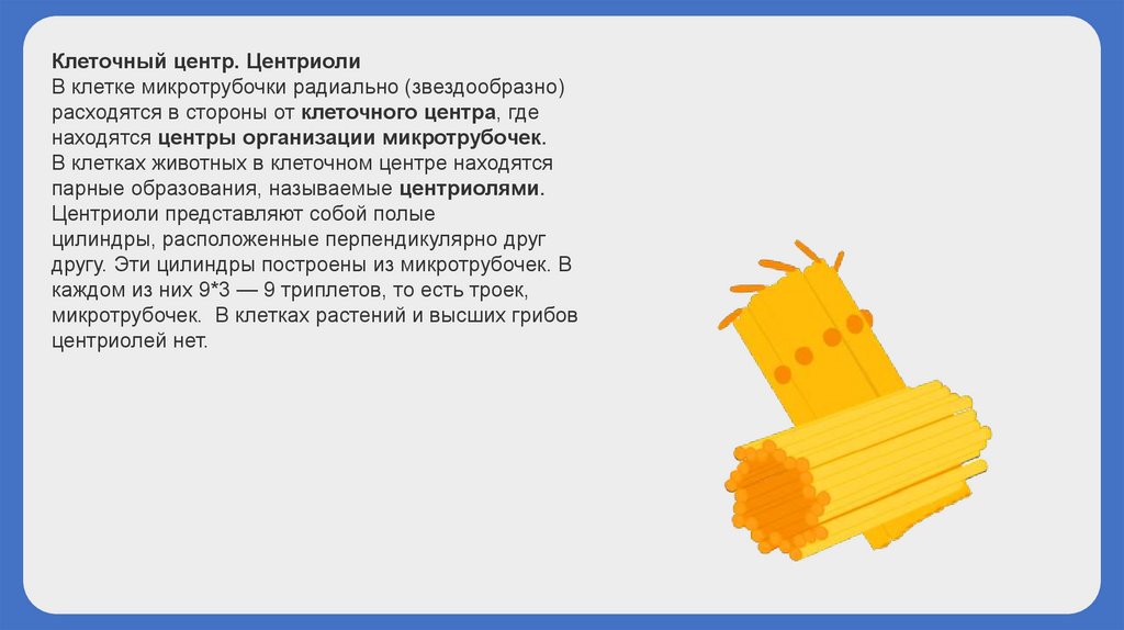 Клеточный центр. ЦентриолиВ клетке микротрубочки радиально (звездообразно)