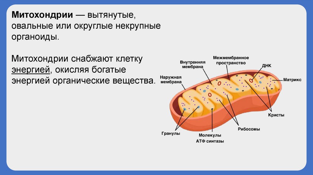 Митохондрии — вытянутые,овальные или округлые некрупные