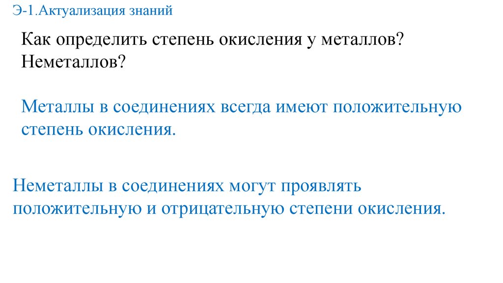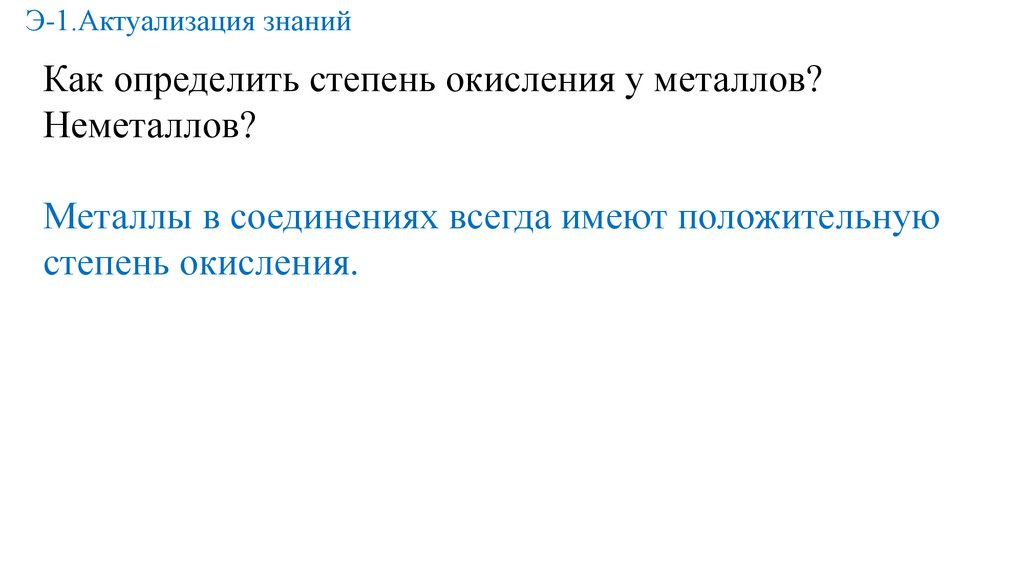 Э-1.Актуализация знанийКак определить степень окисления у металлов?