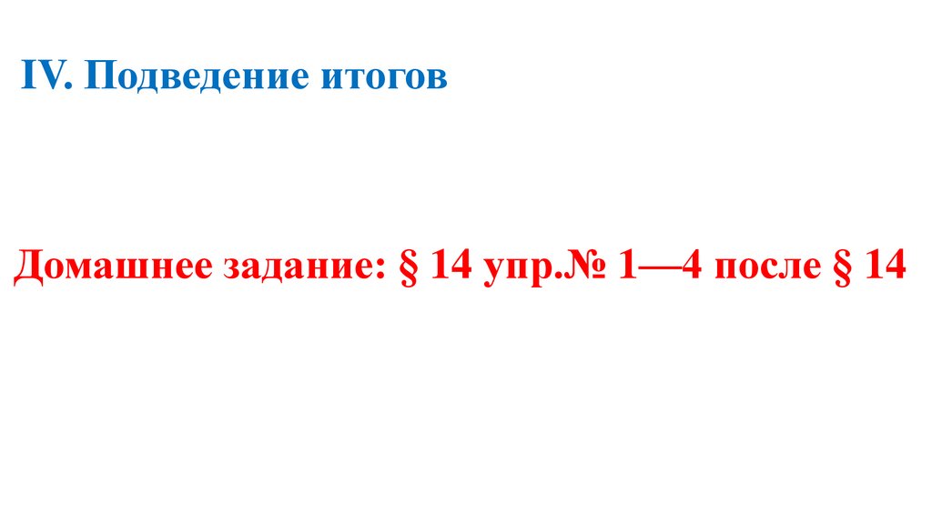 IV. Подведение итоговДомашнее задание: § 14 упр.№ 1—4 после § 14