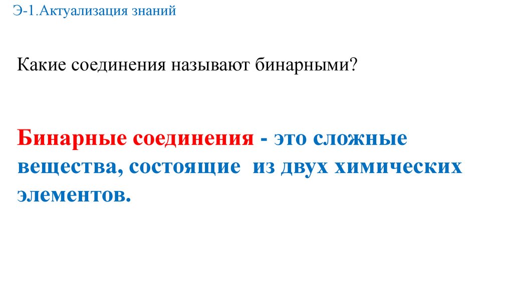 Э-1.Актуализация знанийКакие соединения называют бинарными?