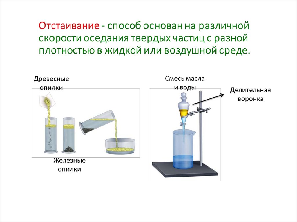 стружки; б) песок и древесные опилки; в) бензин и вода; г) раствор этилового