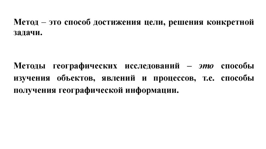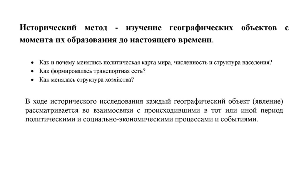 Исторический метод - изучение географических объектов смомента их образования до настоящего времени.