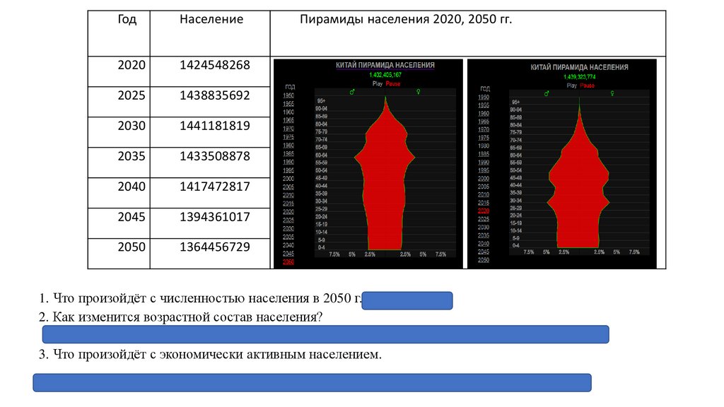 1. Что произойдёт с численностью населения в 2050 г. (снизится)