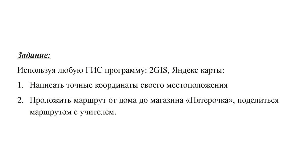 Задание:Используя любую ГИС программу: 2GIS, Яндекс карты: