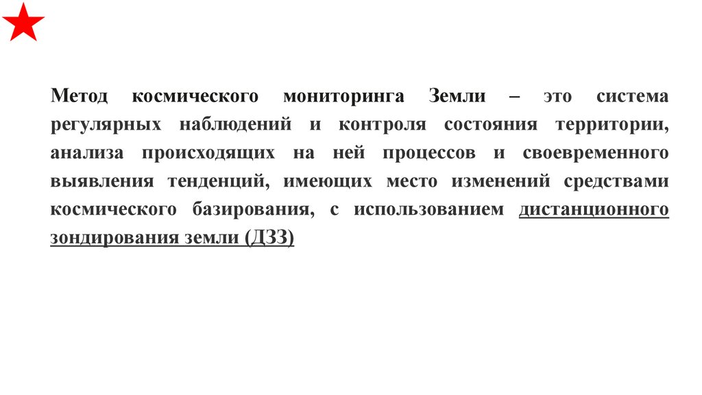Метод космического мониторинга Земли – это системарегулярных наблюдений и контроля состояния территории,