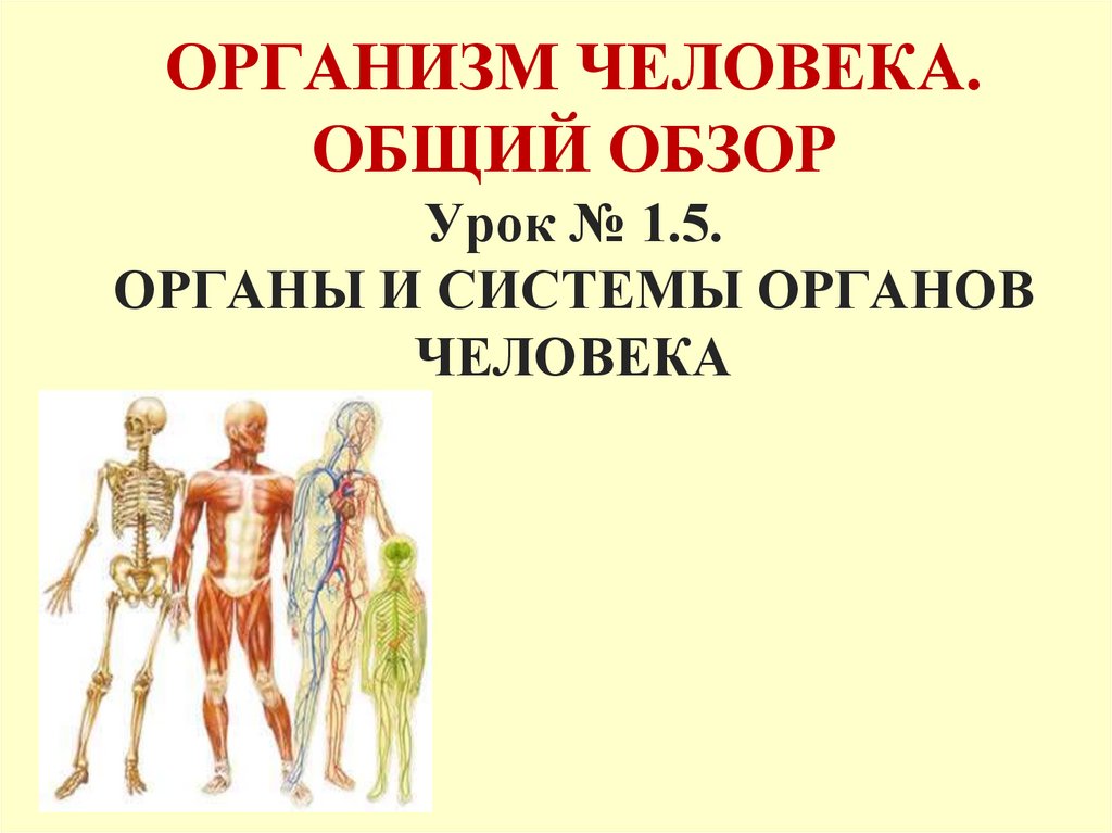 1. ОРГАНИЗМ ЧЕЛОВЕКА. ОБЩИЙ ОБЗОР Урок № 1.5. ОРГАНЫ И СИСТЕМЫ ОРГАНОВ ЧЕЛОВЕКА