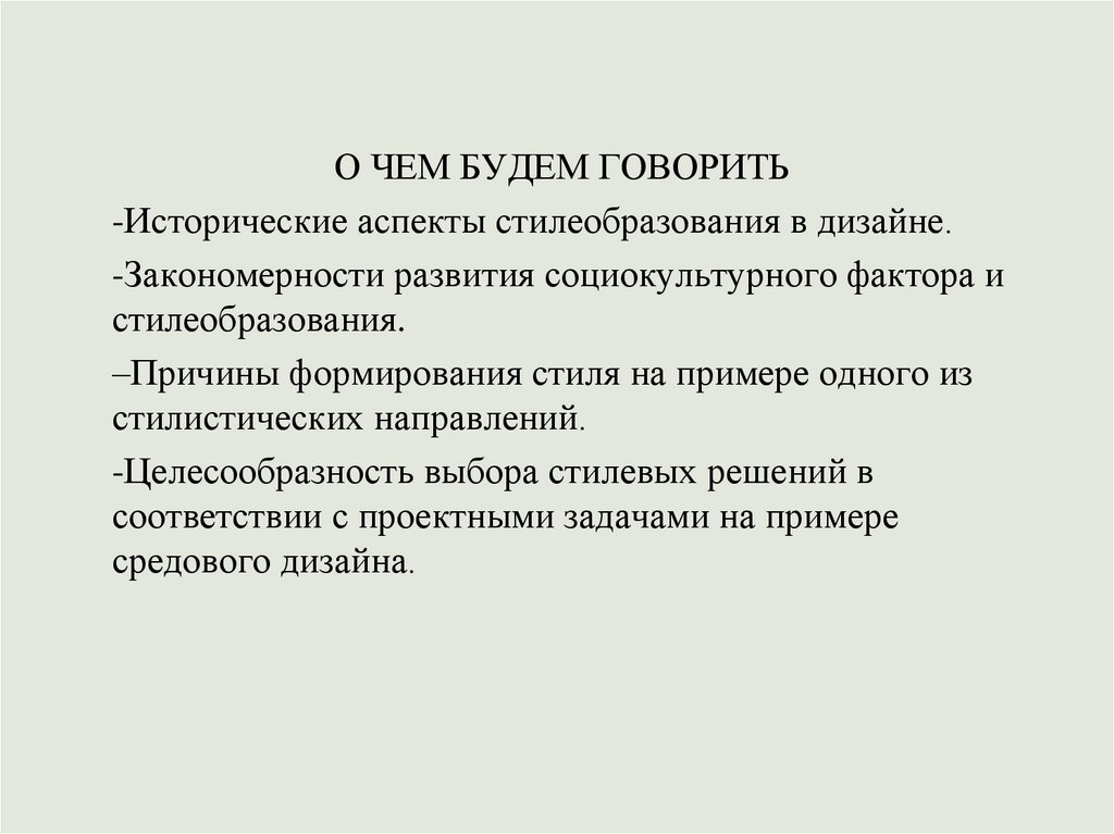 О ЧЕМ БУДЕМ ГОВОРИТЬ-Исторические аспекты стилеобразования в дизайне.