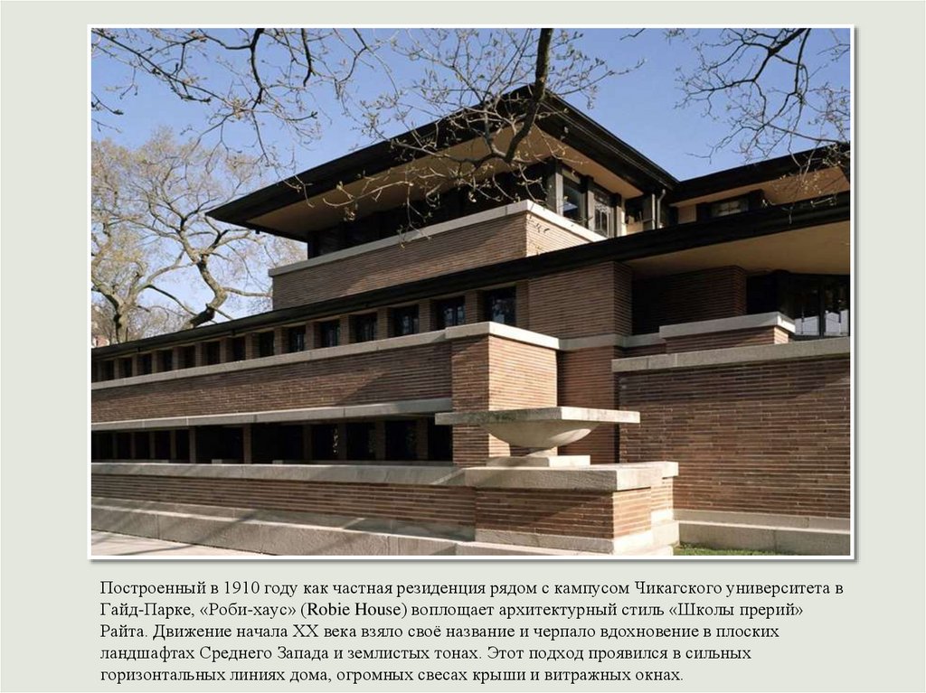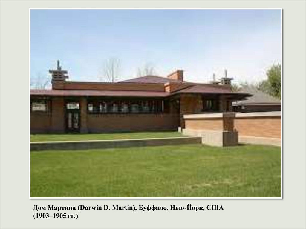 развивали принципы, заложенные ещё в «Домах Прерий». Широкая крыша домов парил