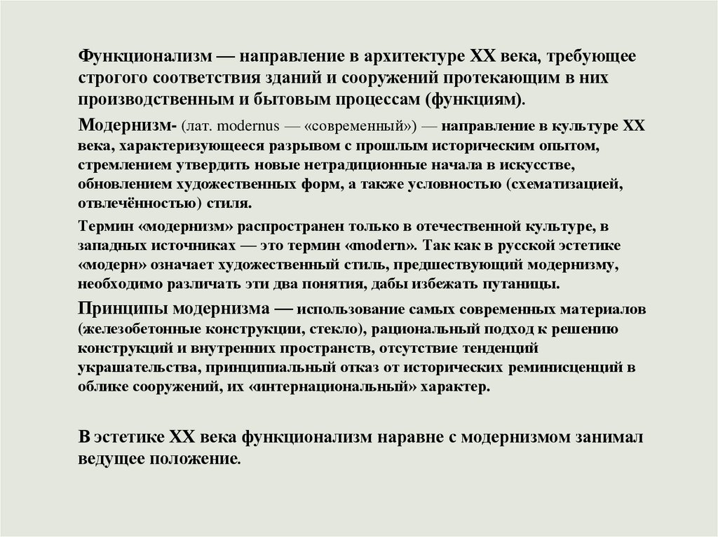 В эстетике ХХ века функционализм наравне с модернизмом занимал