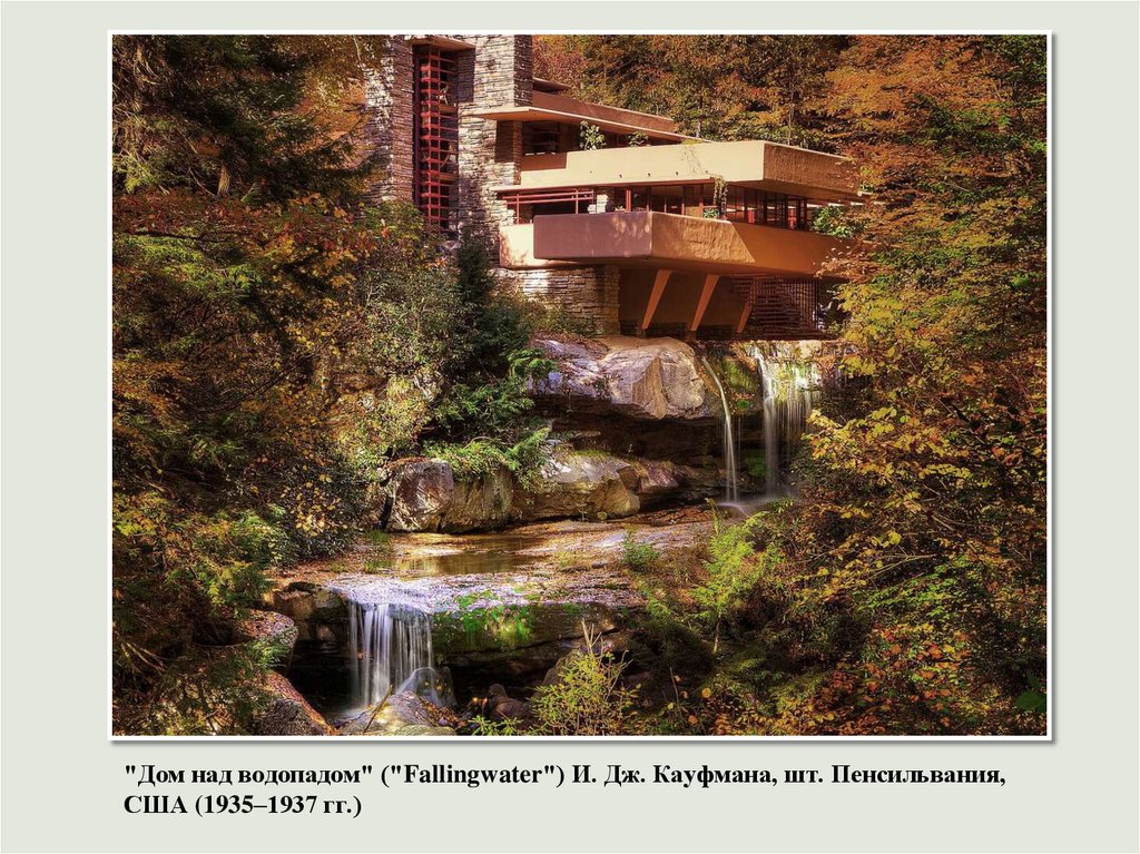 "Дом над водопадом" ("Fallingwater") И. Дж. Кауфмана, шт. Пенсильвания,США (1935–1937 гг.)