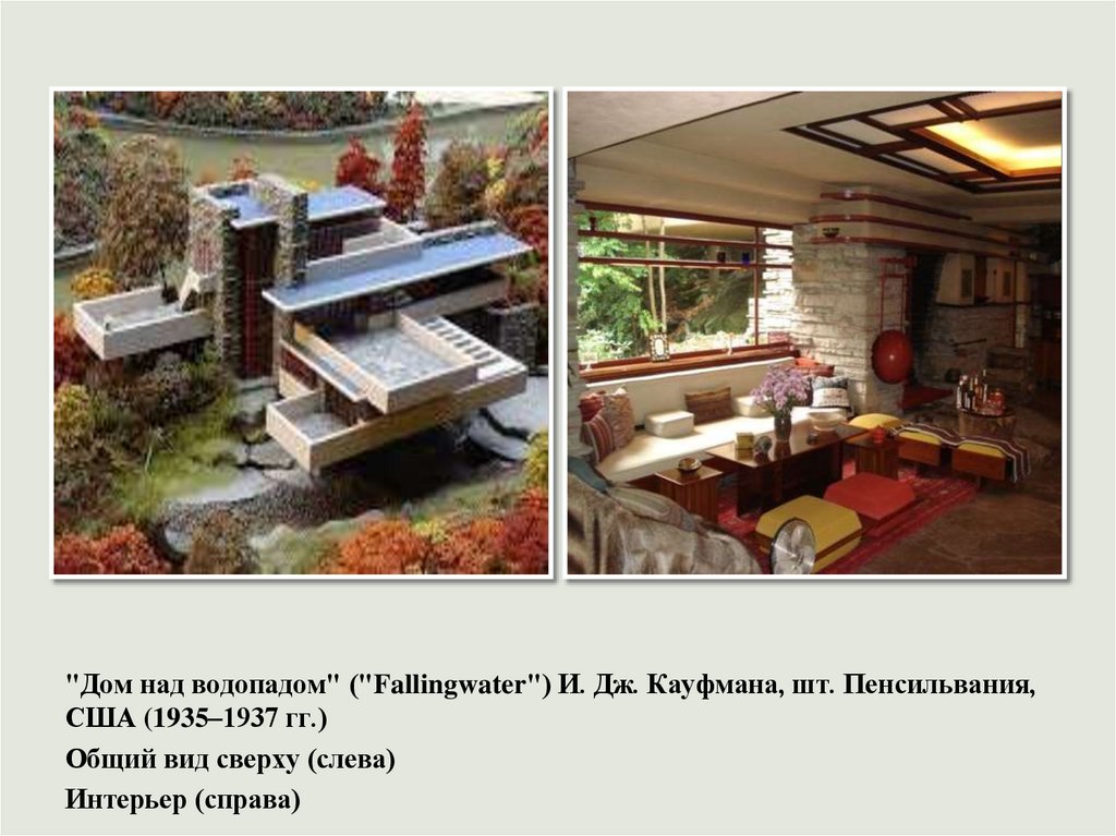 («Fallingwater»), шт. Пенсильвания. Дом представляет собой композицию