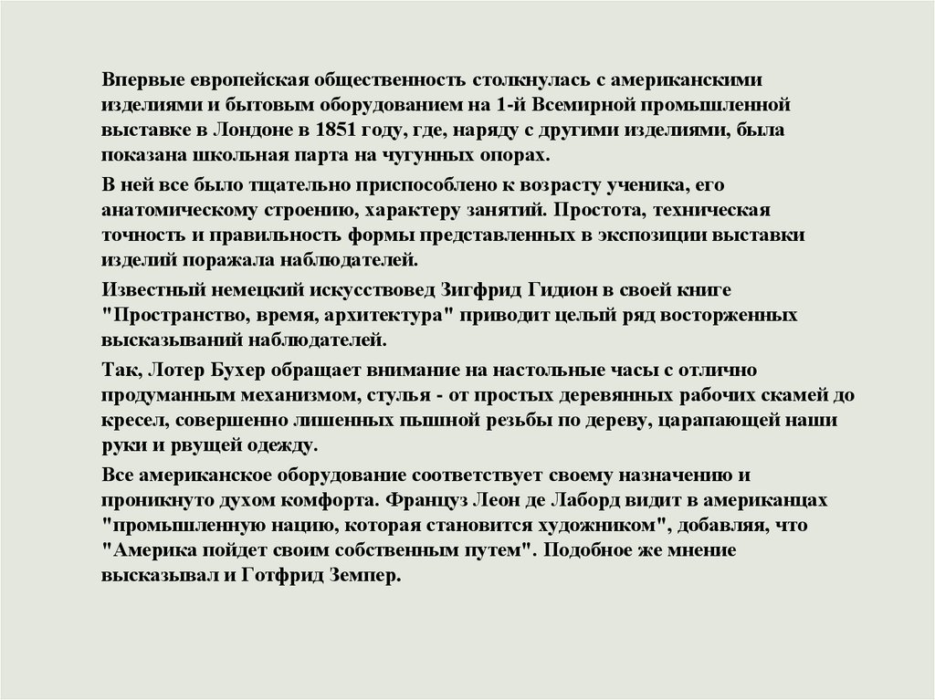 проникнуто духом комфорта. Француз Леон де Лаборд видит в американцах