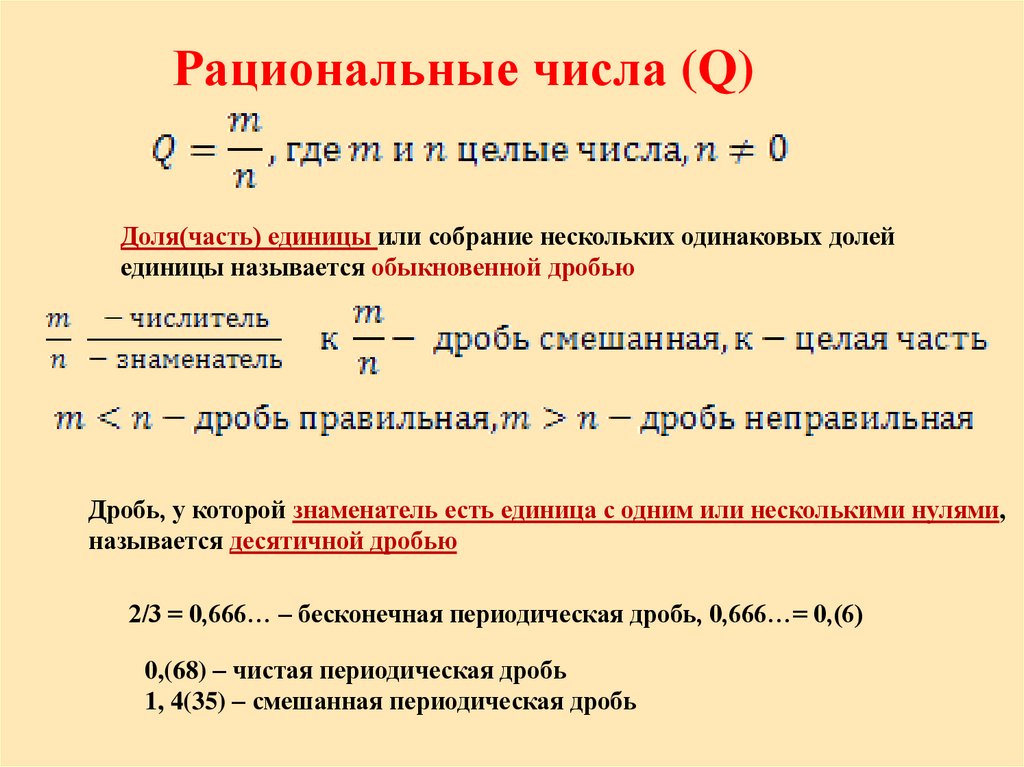 Рациональные числа (Q) целые числа, положительные и отрицательные дробные