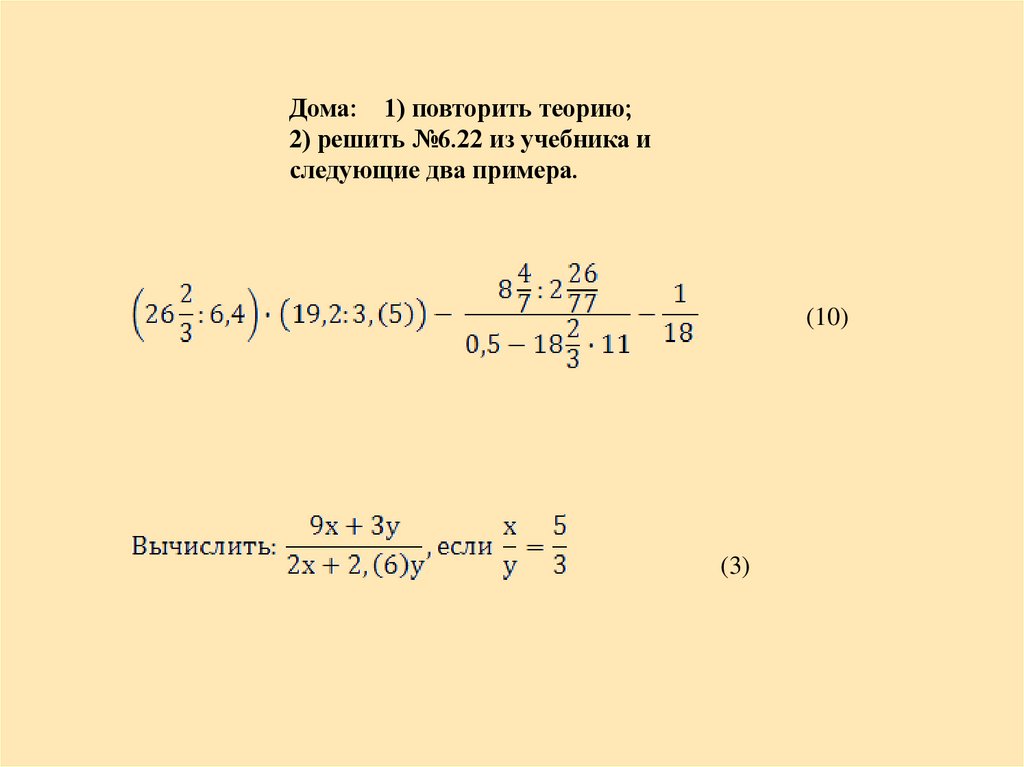 Дома: 1) повторить теорию;2) решить №6.22 из учебника и