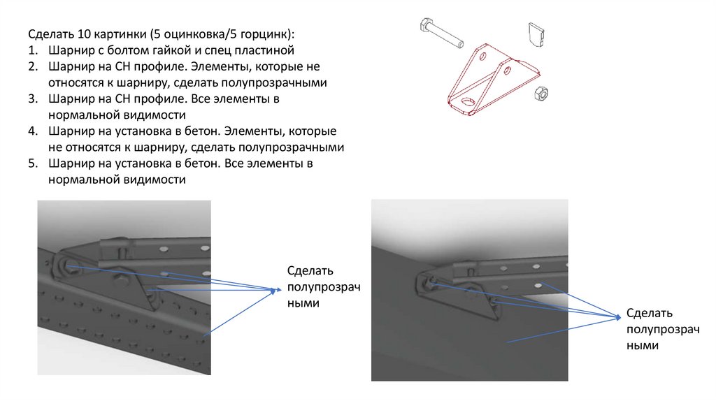 Сделать 10 картинки (5 оцинковка/5 горцинк):1. Шарнир с болтом гайкой и спец пластиной