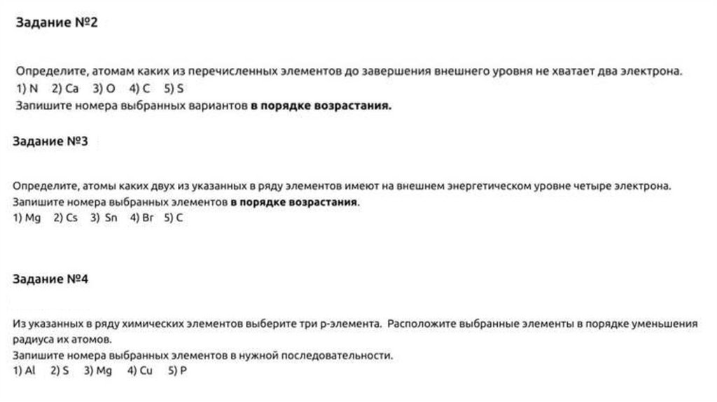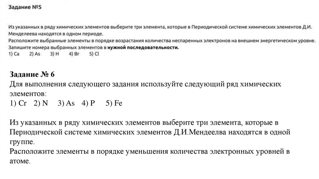 Задание № 6Для выполнения следующего задания используйте следующий ряд химических