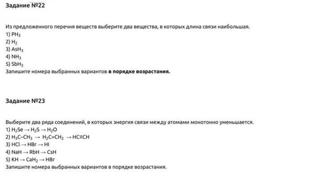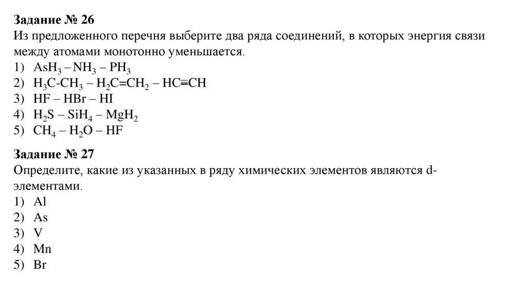 Задание № 26Из предложенного перечня выберите два ряда соединений, в которых энергия связи