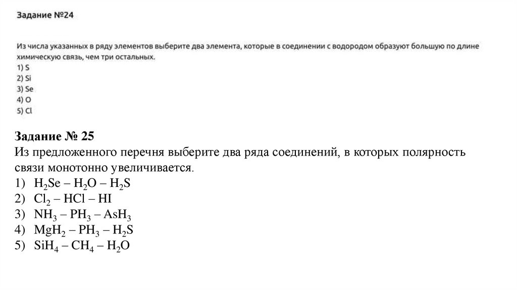 Задание № 25Из предложенного перечня выберите два ряда соединений, в которых полярность