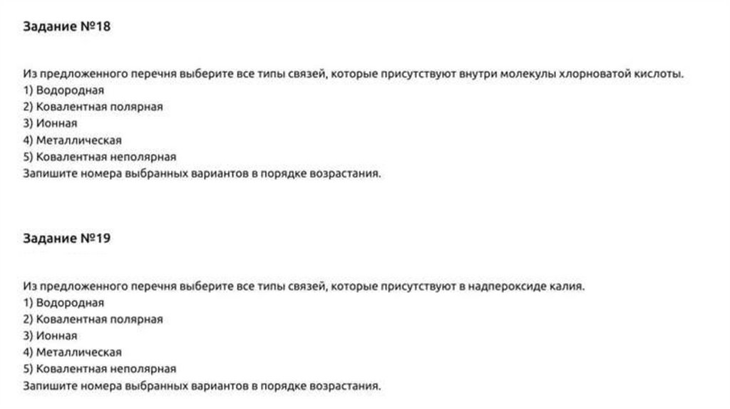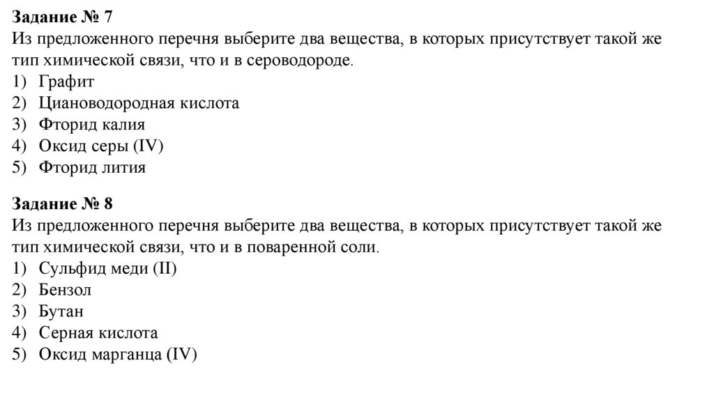 Задание № 7Из предложенного перечня выберите два вещества, в которых присутствует такой же