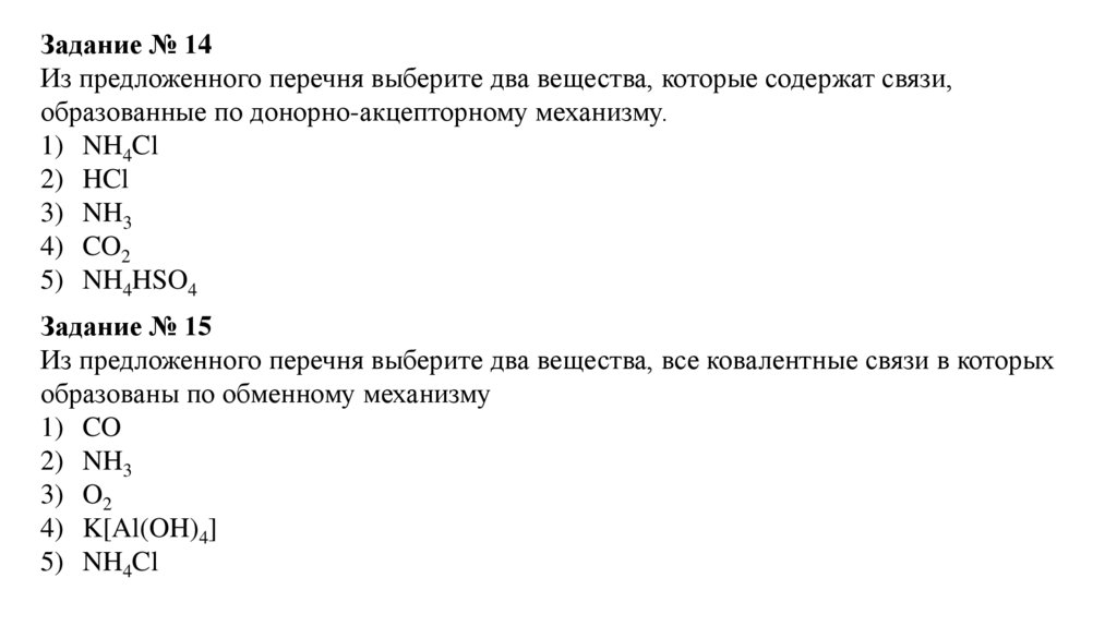 Задание № 14Из предложенного перечня выберите два вещества, которые содержат связи,