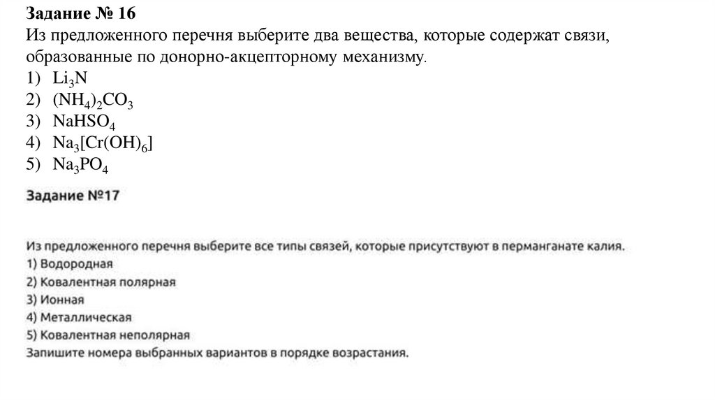 Задание № 16Из предложенного перечня выберите два вещества, которые содержат связи,