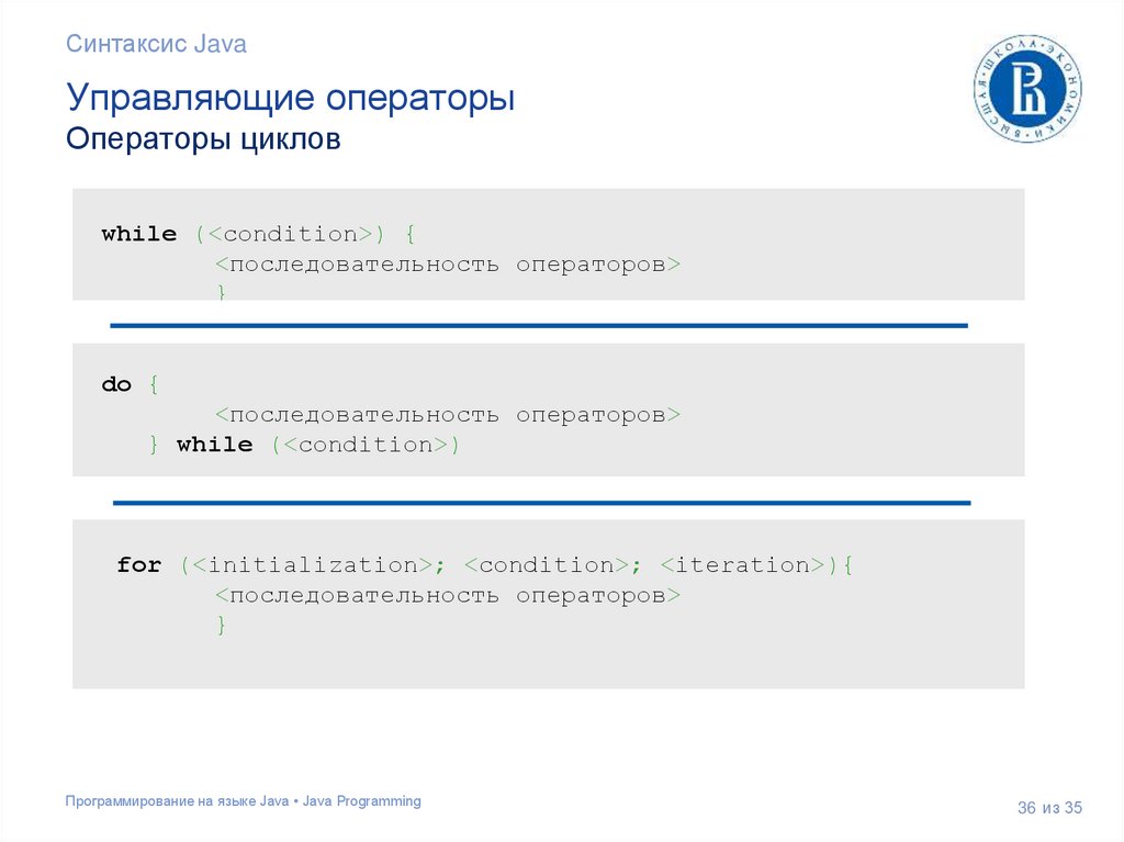 Во всех операторах <condition> - выражение, возвращающее тип boolean