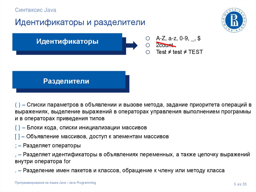 , – Разделяет идентификаторы в объявлениях переменных, а также цепочку выражений