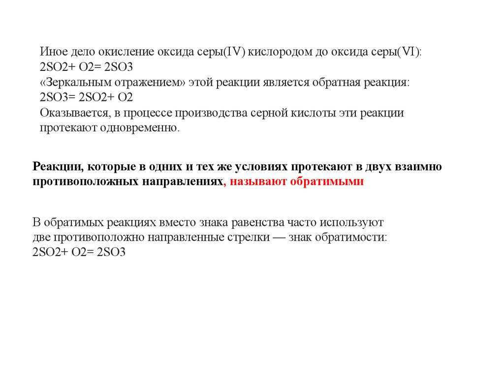 Иное дело окисление оксида серы(IV) кислородом до оксида серы(VI):2SO2+ O2= 2SO3