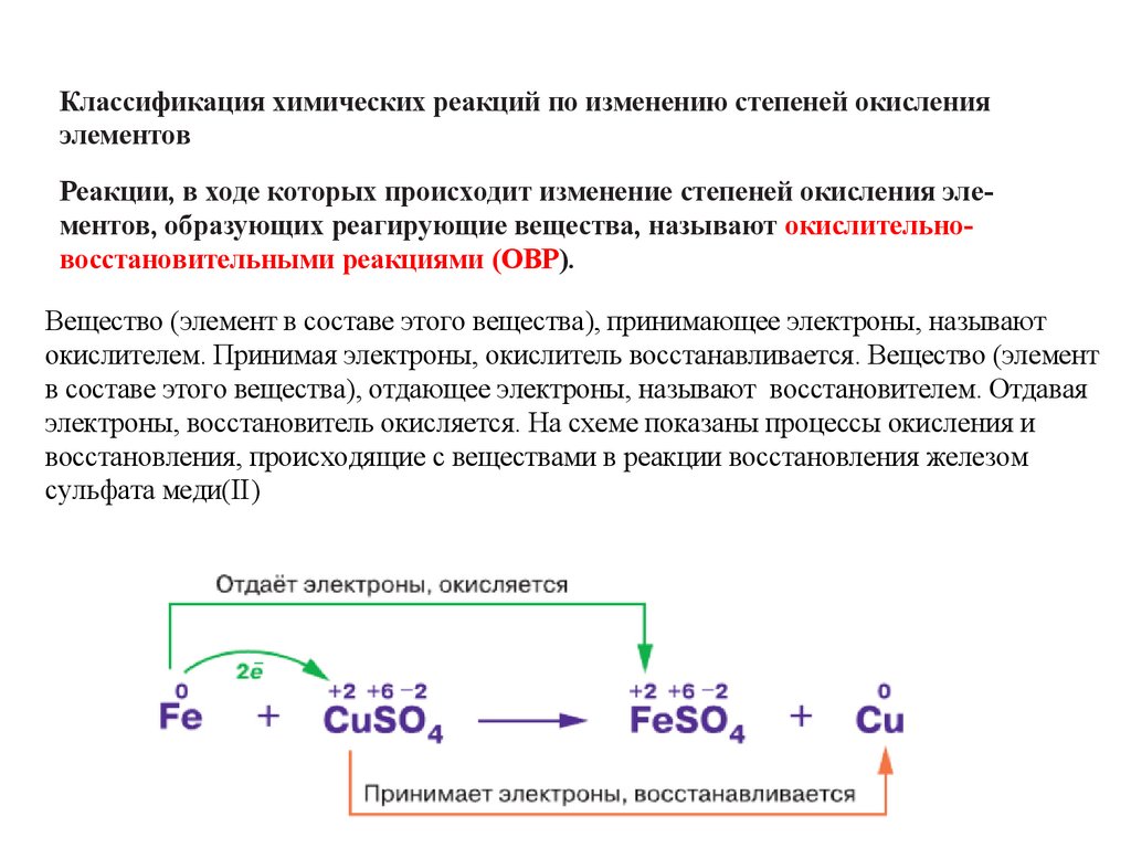Классификация химических реакций по изменению степеней окисленияэлементов