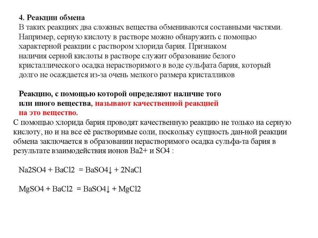 обмена заключается в образовании нерастворимого осадка сульфа-та бария в